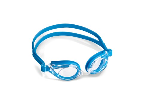 Zwembril volwassenmodel compleet gemonteerd met planglazen, blauw